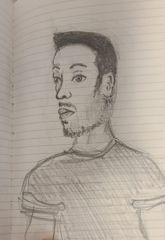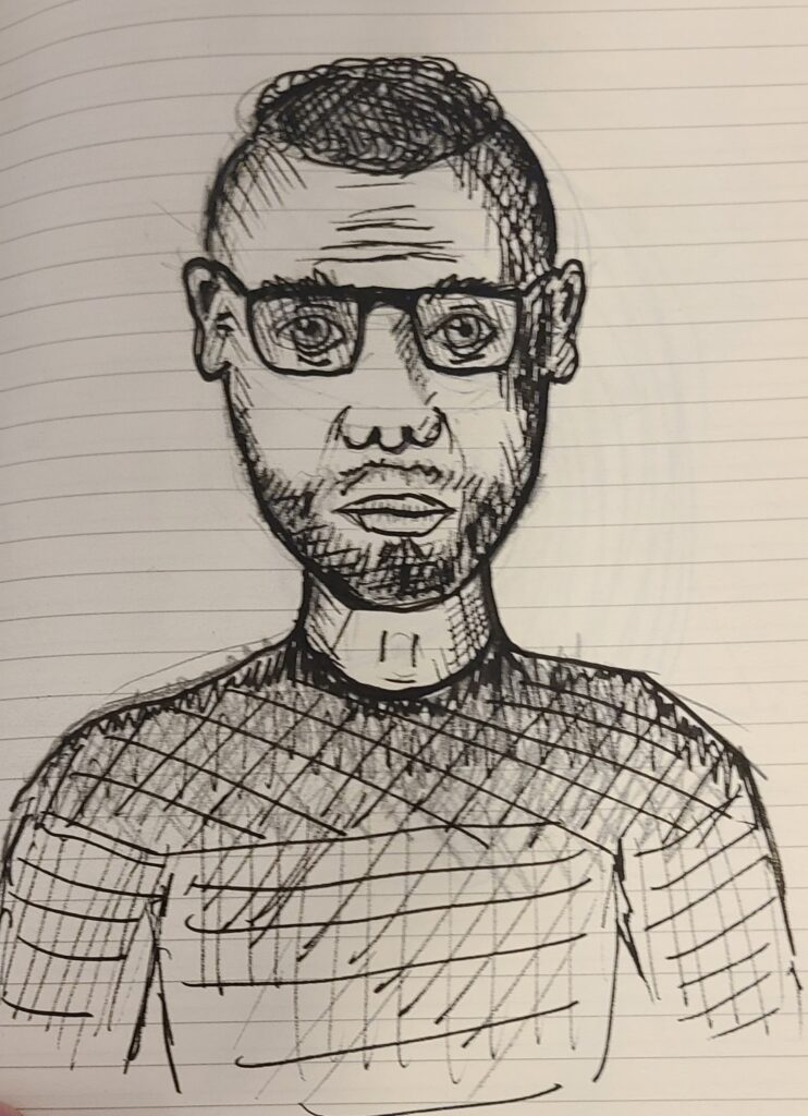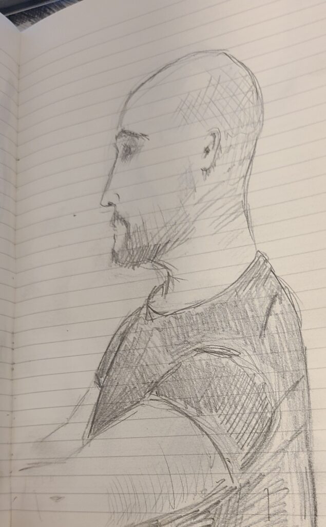 One thing I’ve always done is doodle in lectures. More recently I’ve tried to work at drawing people. Over the semester, I’ve drawn a few of my classmates and some teachers. Here are some of my favorite images. Can you recognize anyone?
